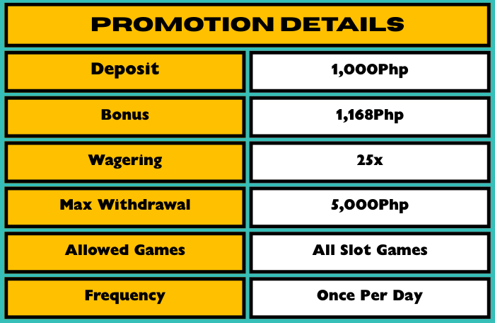 ✅ Get an EXTRA Php 1,168 added to your deposit included in this promotion.